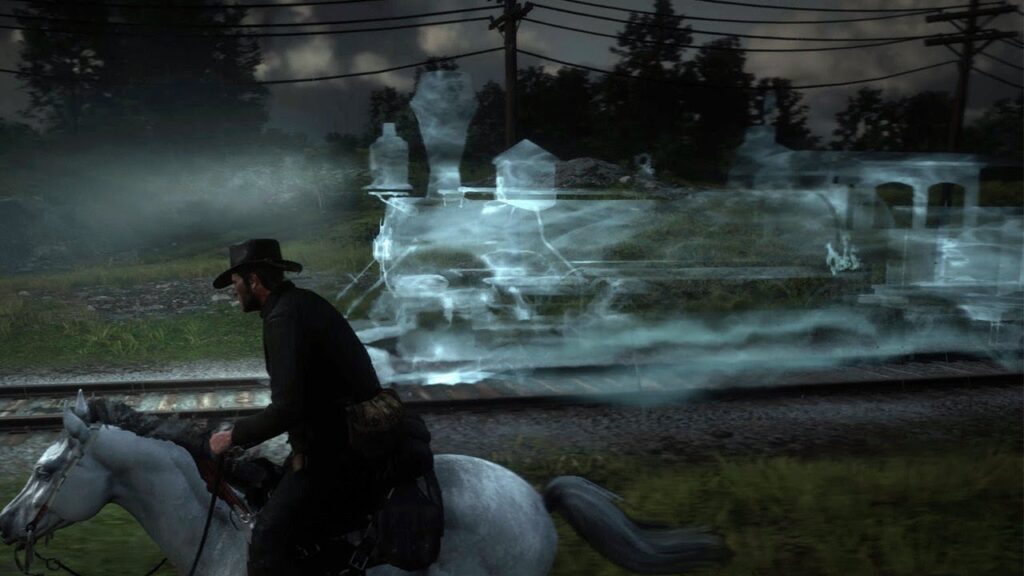 Between 3 AM and 4 AM in-game time, on the train tracks northwest of Lemoyne, a ghost train materialises out