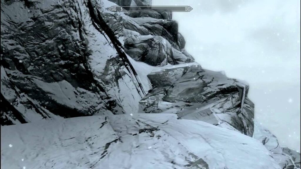 At the very summit of the Throat of the World — the highest point in Skyrim — embedded in a